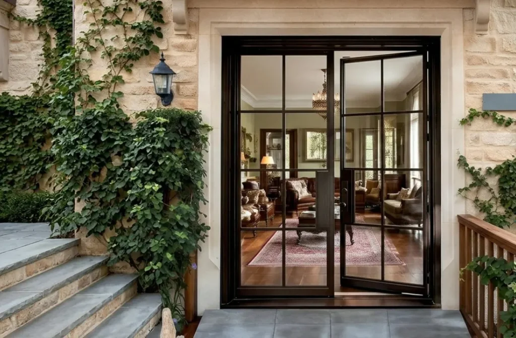 French doors are one of the most beautiful features you can add to a home. They usually come as two doors with glass panels that open in the middle. This design lets sunlight flow into the room and helps the space feel bigger and brighter.